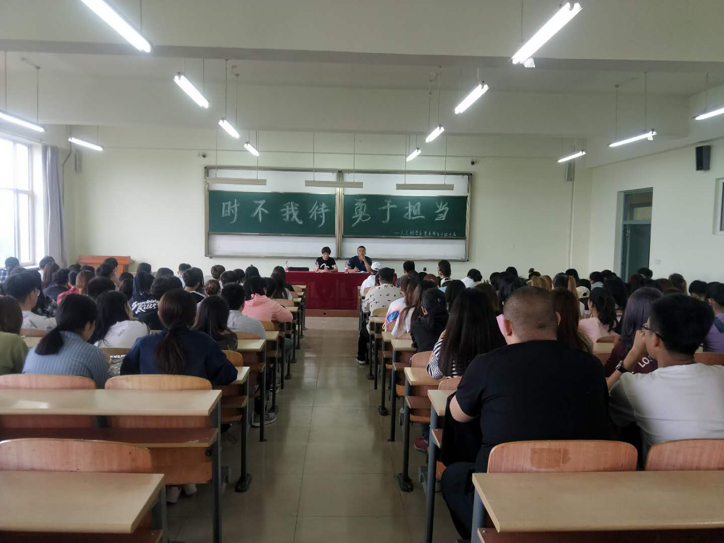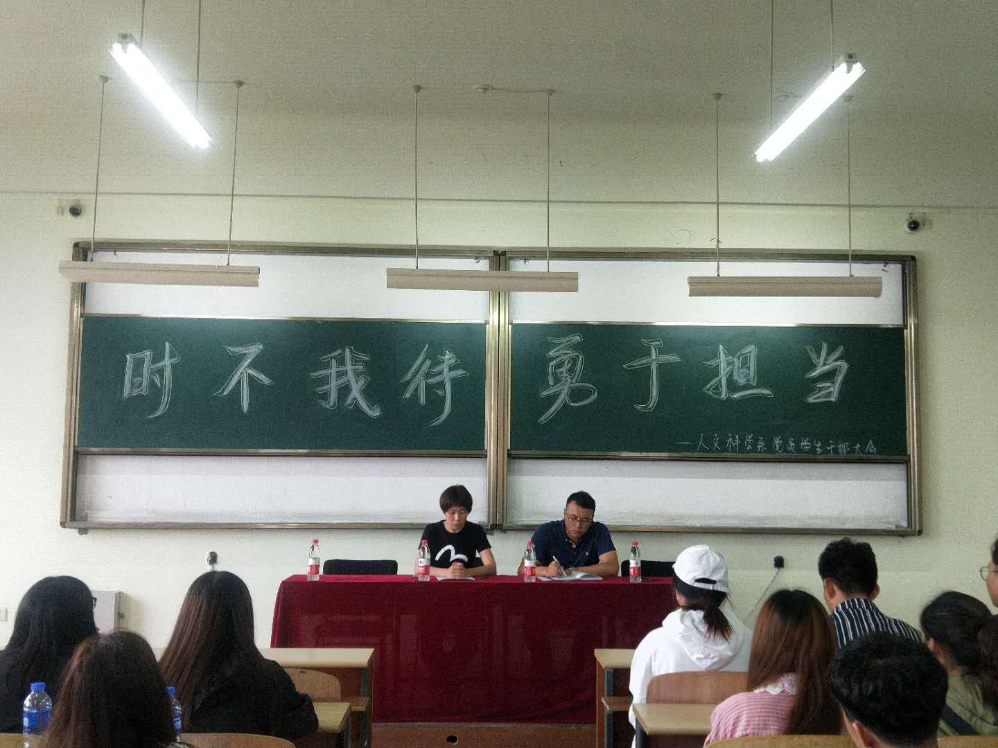为更加明确学生干部的任务和职责,更好的发挥学生干部的带头作用,进一步营造良好的系风和学风。我系于9月2日14:30在539教室召开了“时不我待,勇于担当”人文科学系党员学生干部大会,大会由团总支书记王姝雯主持,我系全体学生干部及学生党员参加了此次会议。
