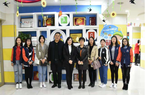 我系领导于13:10抵达了“天童美语培训学校”,孙书记首先说明了此次走访的目的,随后又对我系基本情况进行了简单介绍。紧接着培训学校校长与我系领导进行了真切友好的交谈,其中提到:“天童美语培训学校已经覆盖国内三十六个地区,建立了50多个分校区,且仅于10月份就拓展了三个地区的培训工作,在校学生7000余人”。麻主任也对其运营团队、运营条件及卫生环境表示肯定,同时对我系已经在这里工作的毕业生进行回访并予以鼓励。