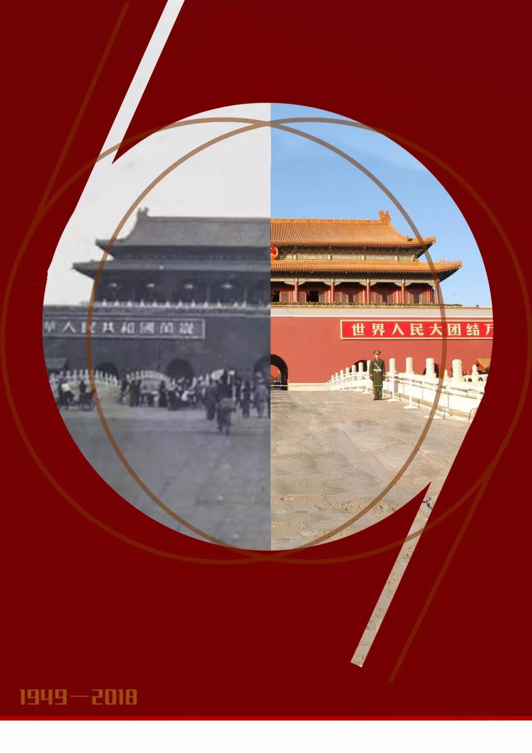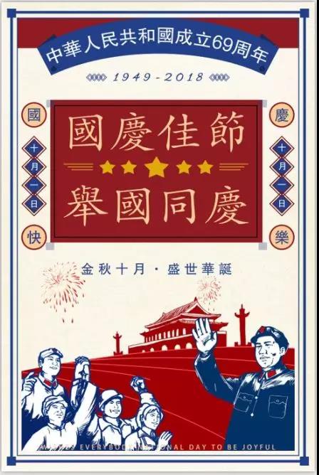 以中华上下五千年为背景,古朴的背景加上代表中华喜庆颜色的红色,庆祝共和国成立69周年,举国同庆。