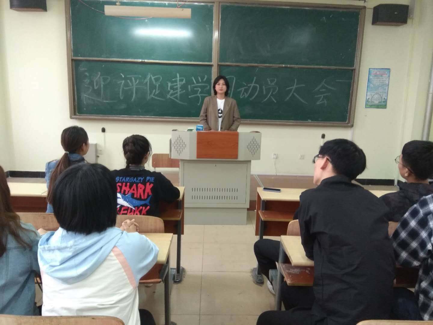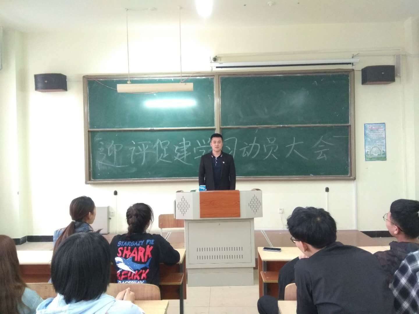 为加深我系学生对教学合格评估的了解,激发其责任感和爱校兴校意识,从而使我系学子以饱满的精神状态迎接我院合格评估。我系16、17、18级辅导员狄健老师、李晓璇老师、徐慧媛老师分别于4月12日及4月15日先后在教学楼组织学生开展了迎评促建学习动员大会。