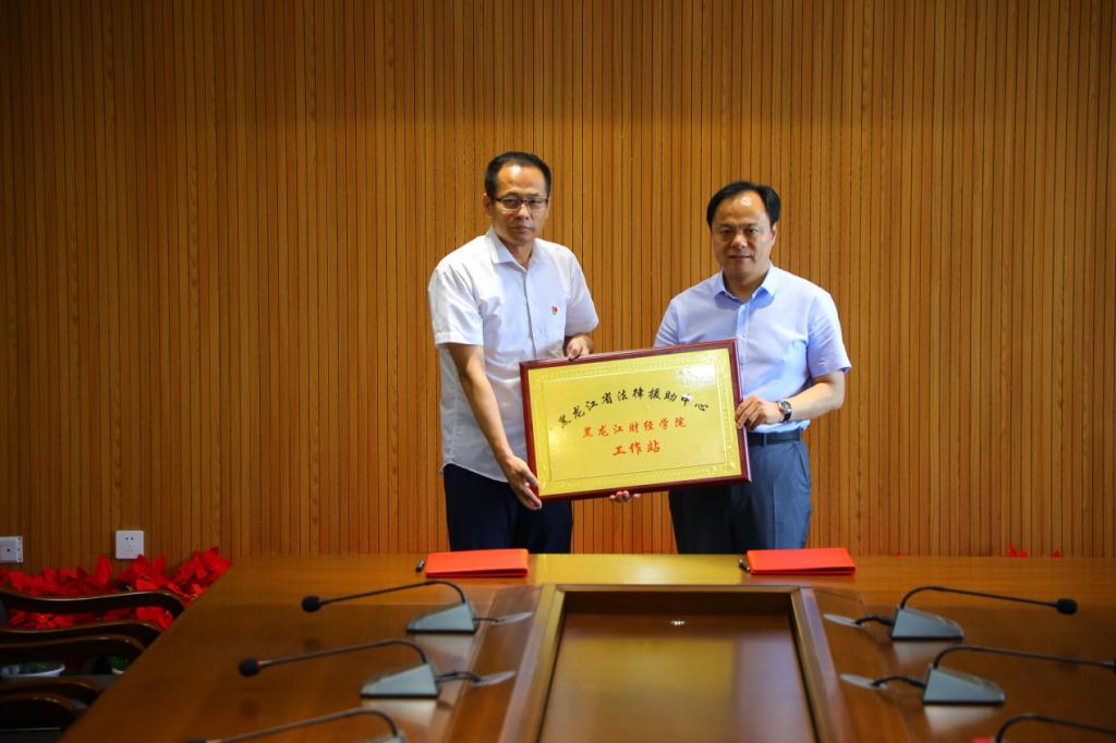 常务副院长于长福与黑龙江省法律援助中心处长刘智勇授牌仪式