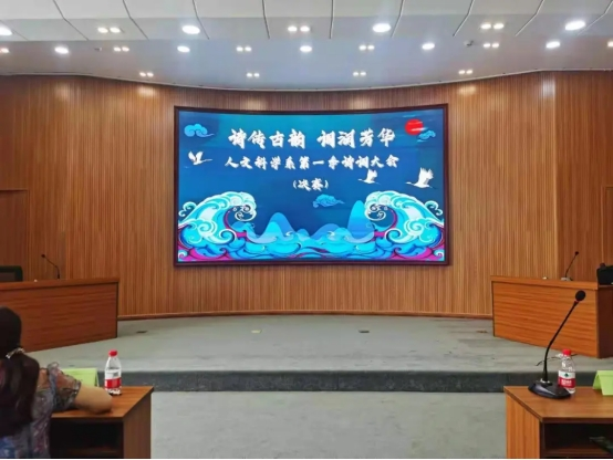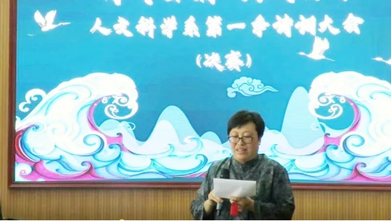 同时,人文科学系主任:韩学平主任。以及人文科学系党总支书记:孙铭壮书记。因工作原因无法亲自莅临到场,选择了通过视频形式为决赛选手加油打气,表达了对本次大会期待和重视.