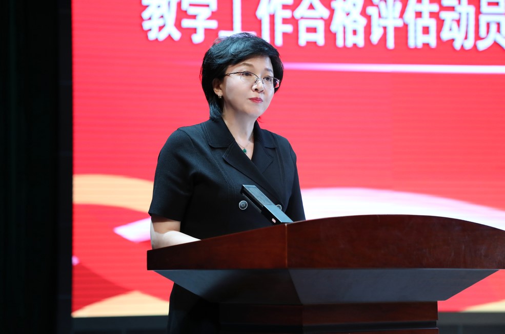 于长福指出,面对合格评估的压力和挑战,我们要有紧迫感、危机感和忧患意识,也要有底气、有信心、有决心、团结带领全校师生员工视挑战为机遇,化压力为动力,撸起袖子加油干,扑下身子抓落实,圆满完成教学工作合格评估工作。一要集中精力,真抓实干,有序完成评估工作任务。各学院、各部门要进一步明确任务、落实分工,准确把握评估的重点、难点和时间节点,逐一认真对照检查,做到“一主、二核、三关键;四看、五评、六实现”。二要各司其职,强化担当,落实落靠评估工作责任。各单位党政负责人要认真履行第一责任,做到亲力亲为,直接指挥,狠抓落实。各单位、各层级要构建上下联动、协同配合、全员参与、环环相扣抓落实的工作格局,做到“精准查找问题、补齐短板漏洞、整改措施到位”,让人人肩上有担子,个个身上有责任,形成强大的工作合力,齐心协力推进合格评估工作。