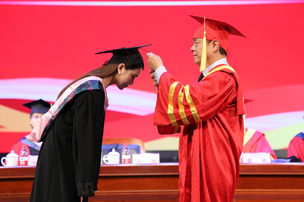 在雄壮的国歌声中,毕业典礼暨学士学位授予仪式拉开了序幕。