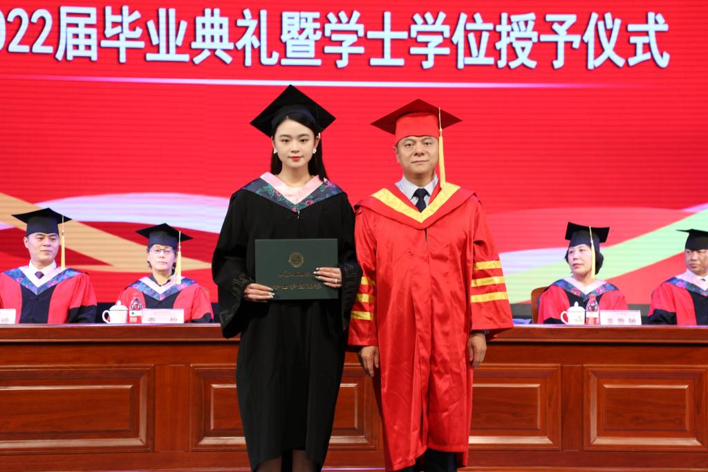典礼上,于长福为27个本科专业毕业生代表颁发学位证书并拨苏正冠。副校长庹莉通报了我校2022届毕业生情况,副校长李宪平宣读了优秀毕业生名单。校领导为优秀毕业生代表颁发了证书。典礼结束后,同学们纷纷与校领导合影留念,将快乐的回忆和不舍的思绪都融入那按下快门的瞬间,定格成永久的美好记忆。
