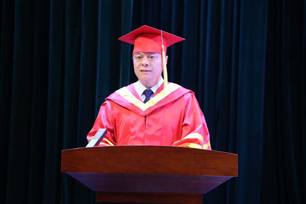 于长福代表学校向毕业生致辞,他表达了对毕业生们的衷心祝福和不舍之情,并提出了三点希望:一是希望同学们坚定理想信念,心怀报国之志。坚定不移听党话、跟党走,培养爱国之情、砥砺强国之志,把自己的小我融入祖国和人民的大我,和时代、人民同呼吸共命运,更好地实现人生价值。二是希望同学们坚持终身学习,践行奋斗之路。牢记总书记的嘱托,立大志、明大德、成大才、担大任,用永不懈怠的精神状态和一往无前的奋斗姿态,在青春的赛道上奋力奔跑,在实现中华民族伟大复兴中国梦的新征程上奋勇前进、再立新功。三是希望同学们恪守为人之道,常怀感恩之心。不要忘记在人生成长的道路上,国家的培养、学校的教育、父母的养育、亲友的帮助。要有滴水之恩当涌泉相报的情怀与品格,要修身立德,涵养清风正气、蓬勃朝气。他强调,再多的惜别之言也无法表达难舍之情,而离别是为了更好的相聚,母校期待看到同学们人生、事业的辉煌,母校永远是同学们坚强的后盾,欢迎同学们常回家看看。最后,祝愿同学们一路平安,健康快乐,心想事成,前程似锦。