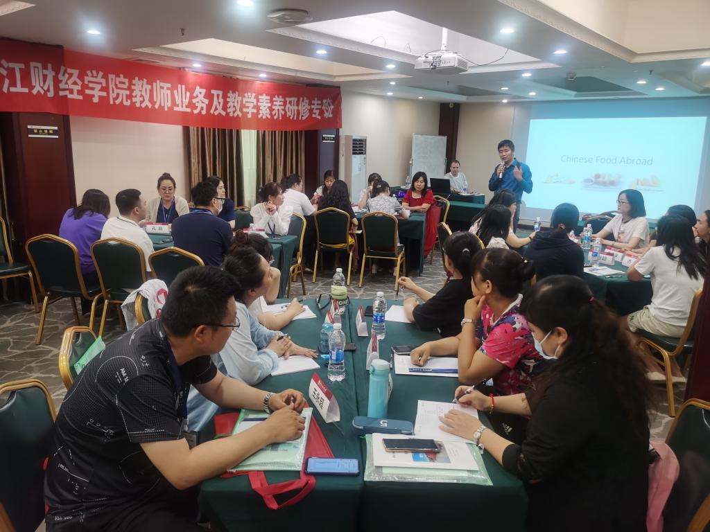 张艳教授以《跨文化交流的差异与禁忌》为题作了首场专题报告,深入浅出的阐述讲解,让学员们进一步加深了对英语和英语语言文化的了解。3位外教教师也带来了精彩纷呈的报告,其中外教Jonathan、的“Chinese Cuisine in the West”(西方的中国菜肴), 外教Richer Lee的“Changes Brought by Covid19”(新冠疫情带来的改变)和外教Sherman的“A talk on Optimal Learning”(最佳学习法),拓展了学员们的思维和眼界,解开了大家在语音教学中存在的迷惑,对英语教学有了更深入的思考。李明教授作了题为《汉英翻译的核心要素》的报告,讲解了自己对翻译领域的独特见解,为学员们英汉翻译和翻译教学指明了前进的方向。