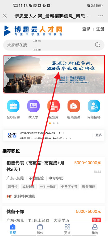 注册完成即可回到首页加入专题活动,查找了解企业和招聘岗位。