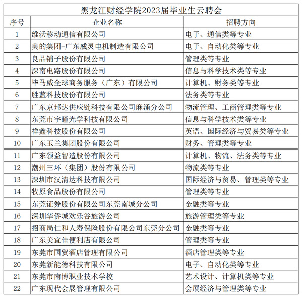 经大湾区产教联盟和黑龙江财经学院沟通协调,决定联合举办黑龙江财经学院2023届毕业生云聘会。云聘会具体情况如下: