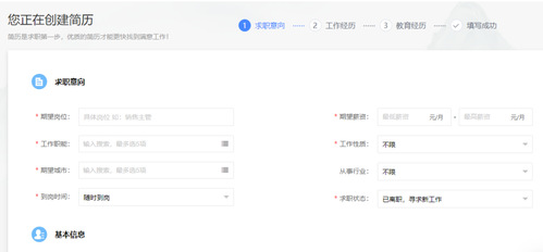 3、选择“我要找工作”后,完善求职注册信息并保存,如下图: