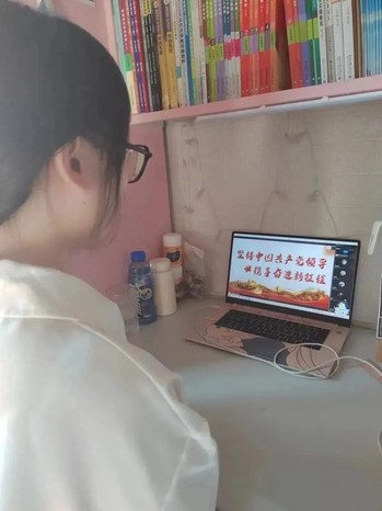 学生党员刘娜娜发表党史演讲《非凡的十年》。铭记辉煌历史,传承红色基因,让党史之光点亮初心,让青春在党和人民最需要的地方绽放绚丽之花。