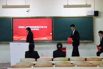 预备会议在庄严的国歌声中开始,会议讨论并确定了大会总监票人、监票人、总计票人、计票人名单,同时介绍了共青团黑龙江财经学院人文学院第四次代表大会候选人情况。