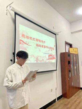 学生王鑫宇发表以《学习百年党史,回顾辉煌历程》为题的党史演讲,该生表示,必须把党的历史学习好、总结好,把党的成功经验传承好、发扬好。要从党史中不断汲取奋进力量,以信仰之光照亮前行之路,用如磐初心凝聚奋斗伟力,守正创新抓住机遇,锐意进取开辟新局。