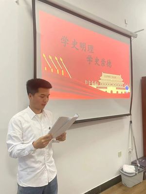 本次会议由学生田凯源主持,他以“光辉百年,重温党史”为题开启本期的党史学习活动并表示:“我们要从党史教育学习中真正体会到真理的力量、思想的力量、实践的力量,不断夯实对党绝对忠诚的思想根基,永远做习近平新时代中国特色社会主义思想的坚定信仰者和忠实践行者。”