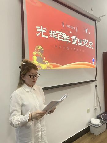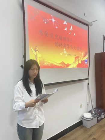 本次会议由学生薛佳圆主持,她表示“党在百年历程中形成的精神谱系具有不同的时代内涵和印记。一代又一代中国共产党人在党的百年历史中刻画出鲜明的时代坐标,构筑起中国共产党人一脉相承的精神谱系,并内化为时代光彩,激发起为实现中华民族伟大复兴而奋斗的磅礴伟力。”