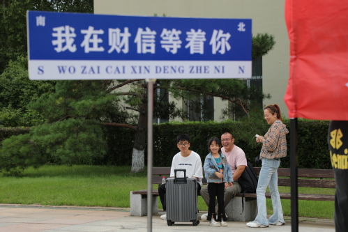 迎新点的巨型红色拱门,悬挂在校园内的迎新横幅和指示标识,都在向刚刚走进校门、眺望前方的新生致以第一声问候。一条条迎新横幅随风轻扬,一张张萌新笑脸灿烂绽放,整个校园到处洋溢着浓烈热情的迎新氛围。精心布置的“龙财,我来了”、“我爱龙财”、“新生到站火车票”等展板吸引了不少新生以其为背景定格这具有纪念意义的瞬间。