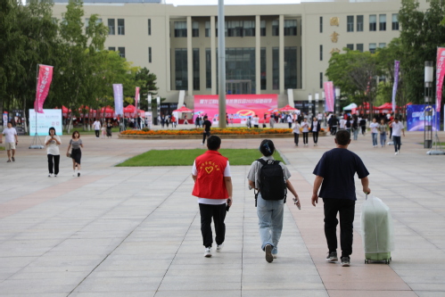 志愿者的一声欢迎、一个微笑、一次讲解,点点滴滴汇聚了他们的热情与期待,“红马甲”辛劳奔波的身影成为了一道靓丽的风景线。此外,全体新生辅导员24小时驻校,由10辆校车组成的接站车队不辞辛劳为新生“保驾护航”。