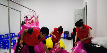 活动开展期间,实践团队成立自媒体宣传、后勤保障和导演助理三个工作组,各组分工协作,一同为旅发大会的顺利开展积极筹备。自媒体宣传组主要负责短视频的拍摄、剪辑、制作,以及自媒体平台的运营宣传,后勤保障组负责整个团队的日常饮食、出行用车以及道具制作,导演助理组负责协助导演调配现场演员和主持人的串场衔接。团队中协同合作,工作效率极高。