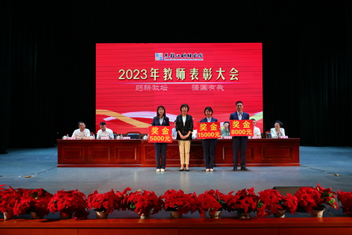 会上,党委副书记李怡宣读了黑龙江财经学院教师表彰大会获奖教师名单,于长福为黑龙江财经学院特殊贡献奖获得者和光荣在岗20年教职工代表颁发荣誉证书和纪念勋章,领导班子其他成员分别为荣获2022-2023学年优秀教育工作者、优秀教师,2023年度师德先进个人,第三届黑龙江省高校教师教学创新大赛获奖教师,第三批黑龙江省高校课程思政示范培育项目教师,2022-2023学年省级、校级教学竞赛获奖教师颁奖,并表示祝贺。