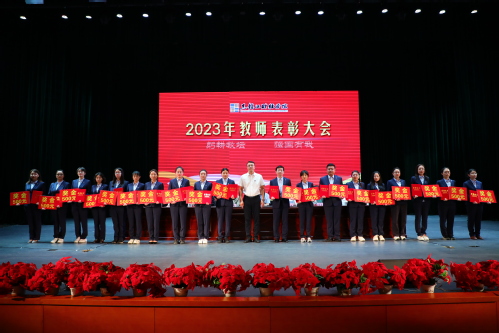 9月8日,我校在音乐厅隆重举行2023年教师表彰大会,热烈庆祝第39个教师节,表彰过去一年在教书育人、学校发展建设中做出特殊贡献的先进代表和光荣在岗20年教职工代表,举行新入职教师宣誓仪式。校长于长福等领导班子成员出席大会,大会由党委书记裘杰主持。