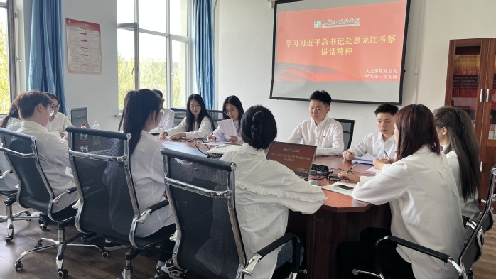 2023年9月11日,人文学院学生第三党支部于尚学楼401室组织全体党员专题学习习近平总书记赴黑龙江考察讲话精神,党支部书记付竹静主持会议,支部党员、积极分子和各级学生代表参会并作代表发言。