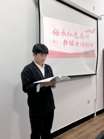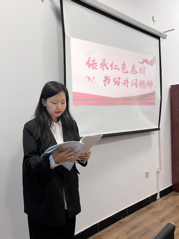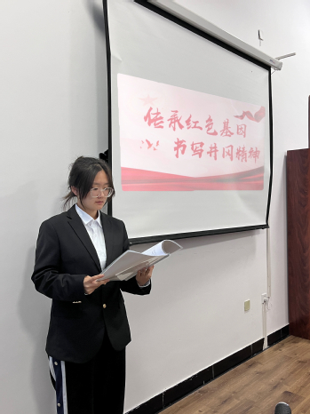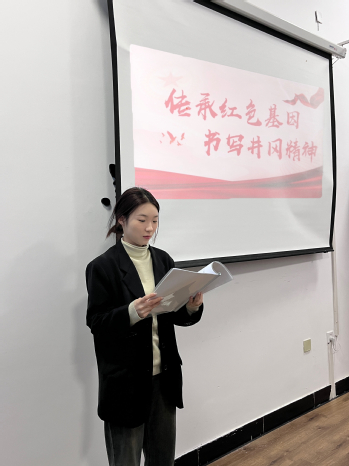 本次活动由2021级汉语言文学专业1班周丽哲主持,该生表示:“那段艰苦卓绝革命斗争所遗留下来的精神,对当今时代来说尤为珍贵。身为当代青年,我们从来都不是精致的利己主义者,我们要将自己的梦想融入中国梦,坚定信念、艰苦奋斗,实事求是、敢闯新路,依靠群众、勇于胜利,让井冈山精神放射出新的时代光芒”。