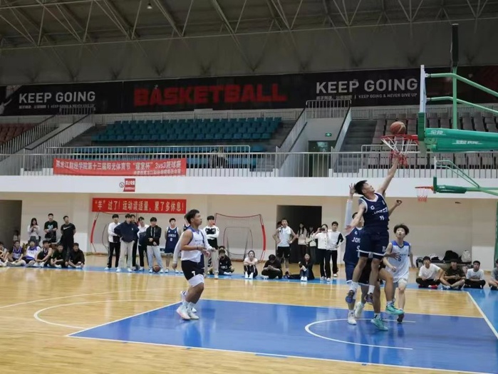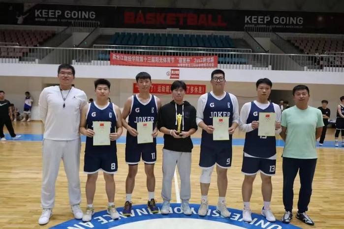 为营造积极向上、朝气蓬勃的校园文体氛围,我校于2023年9月21日在体育馆举办第十三届阳光体育节篮球赛决赛。人文学院倡导学生“走下网络、走出宿舍、走向操场”,五育并举,全面发展,特组织两组篮球队队员利用课余时间开展训练,切磋球技。经过八场激烈的角逐,我院“joker”团队进入决赛,参赛队员有2023级法学四班马睿、于雨峰、徐彬皓、杨铠搏。