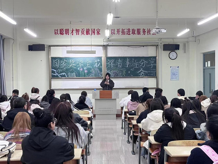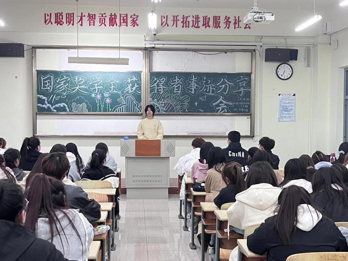 为推动人文学院优良学风建设,树立学生榜样示范引领作用,确保资助育人工作发挥到最大实效,我院于2023年10月26日下午18:00在尚学楼522教室开展国家奖学金获得者事迹分享会,由国家奖学金获得者2021级广告学1班齐心、2022级商务英语1班刘天一主讲发言。