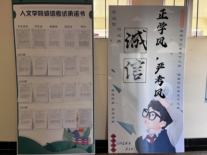最后,辅导员通过以往违纪处理的经典案例,再次警示学生们端正态度,诚信应考,并组织学生签订诚信考试承诺书。