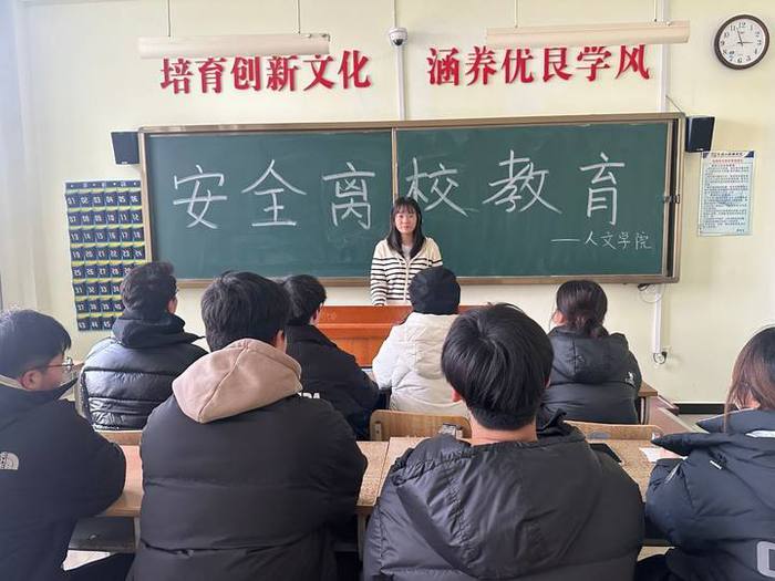 为进一步贯彻落实校园安全管理责任,进一步教育引导学生树立“安全第一,防范危险”的思想观念,提高自身避险能力,平安度过一个安全有意义的假期。人文学院于12月18日分别组织召开假期安全教育主题班会,会议以班级为单位,各辅导员主持,全体在校学生参加。
