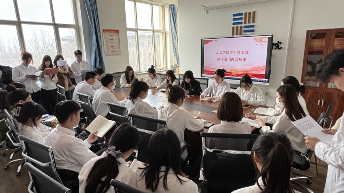 3月4日、5日,全国政协十四届二次会议、十四届全国人大二次会议在北京开幕,人文学院师生热切关注全国两会的召开,深刻领会和学习会议精神,于3月14日在党员之家召开党员大会热议全国两会精神,就相关热点问题开展研讨交流。会议由学生第二党支部党支部书记于芊主持,全体党员参会。