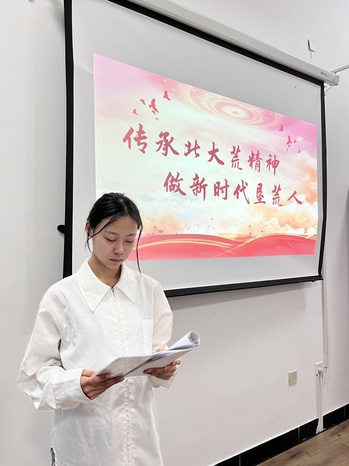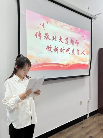 本次活动由2023级英语专业二班张娜主持,该生表示:“通过观看此次视频学习,我看到了无数响应国家号召的中华儿女怀着必胜的信念扎根北大荒,用汗水和鲜血书写了辉煌篇章,用自己的青春和智慧征服了这片黑土地。我们作为当代青年人,也应坚韧不拔,发扬北大荒精神,真正做到脚踏实地、实干笃行。”