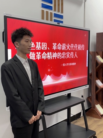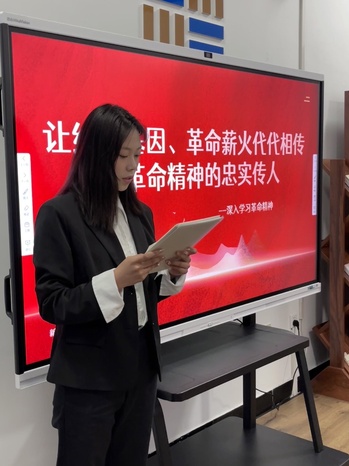 本次活动由人文学院学生第一党支部书记周静主持,她表示:“新时代积极分子,应将精神文化作为强大思想武器和科学行动指南,从中汲取奋进力量。以滴水穿石的劲头、铁杵磨针的功夫在青春的赛道上勤勉耕耘、砥砺奋进,以英烈为榜样,厚植为民情怀,赓续英雄之志,锻造过硬本领,以历尽苦难而淬火成钢的无畏之心为祖国的复兴谱写璀璨青春华章。”