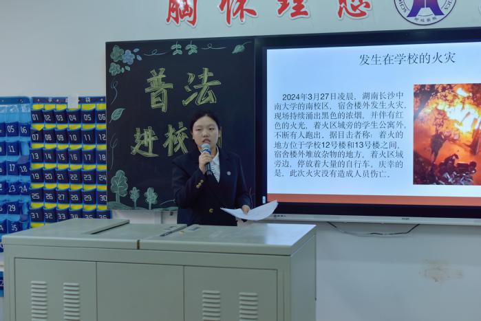 活动期间,同学们围绕校园欺凌和防火、用电安全主题,以真实案例讲述有关概念,从《中华人民共和国民法典》、《中华人民共和国刑法》等法律条例解读违法犯罪的严重后果。以真实的校园火灾案例和面对火灾的脱险措施教育引导学生用电安全无小事,牢记校规校纪,避免危险的发生。