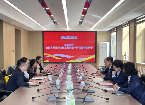 4月29日,农民日报社经济部主任钟欣一行莅临我校考察调研。校长于长福出席会议并讲话,副校长庹莉、副校长徐雷、人文学院副院长陈松参加会议。