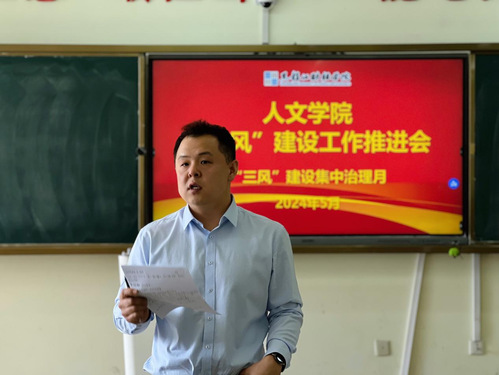 首先,张雅秋院长传达了于长福校长在我校召开的作风建设推进会中的会议精神,强调要以高站位把握“三风”建设的重要性。人文学院要充分认识“三风”建设工作对学校教育教学改革的意义,我院全体教师需更好的引导学生明确学习目的、端正学习态度、遵守学习纪律、增强学习动力、改善学习方法、提高学习效果,建设优良的学风;严格教学管理,规范教学行为,将教师的精力凝聚到教研活动、教学改革和教学基本能力提升中,营造优良的教风;做到爱岗敬业、廉洁自律、守正创新,坚持优良的作风。“转作风、正教风、促学风”,学风、教风、作风是有机统一、不可割裂的关系,要统筹把握并运用好三者关系,同时又要充分发挥其不同的功能特点,对于人文学院推进“三风”建设工作至关重要。