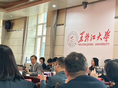 6月1日,教育部外语类专业教指委主任委员、北京外国语大学孙有中副校长,在黑龙江大学组织召开黑龙江省外语“三进”工作调研座谈会。教育厅高教处负责人,黑龙江大学、哈尔滨工程大学、东北林业大学、哈尔滨师范大学等部分高校教务处处长,各高校外语院系负责人参加会议。