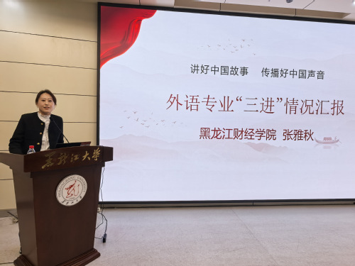 我校人文学院院长张雅秋教授受邀参会并以“讲好中国故事 传播中国文化 外语专业‘三进’情况汇报”做主题发言。她从进课堂、进教材、进头脑三个方面介绍了黑龙江财经学院在此项工作中取得的成果与经验,并阐述了新文科建设、课程思政与“三进”工作的密切关系。张雅秋院长表示,黑龙江财经学院积极响应国家号召,全面落实党的二十大精神,致力于通过“三进”工作创新外语类专业课程体系、知识体系和教材体系,培养具备全球视野和跨文化交际能力的合格应用型人才。