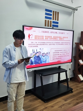 为深入学习宣传贯彻党的二十届三中全会精神,教育引导党员把思想和行动统一到全会精神上来,9月5日,人文学院学生第三党支部以“学习+研讨”的形式,重点围绕《中共中央关于进一步全面深化改革 推进中国式现代化的决定》文件资料开展学习研讨交流。会议由党支部书记付竹静主持,党支部全体在校党员参加。