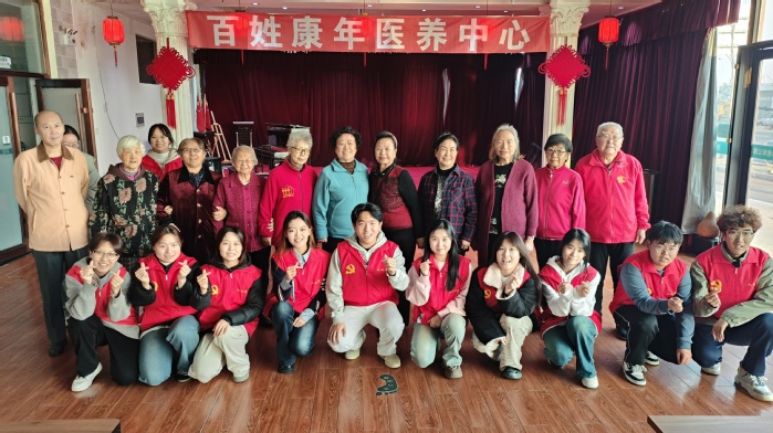 2024年11月6日,人文学院学生第二党支部辅导员徐鑫源带领支部内14名学生赴哈尔滨松北区百姓康年医养中心开展“关爱老人”志愿服务活动。