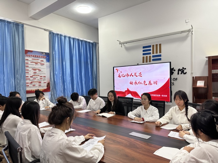 为深入学习贯彻习近平新时代中国特色社会主义思想和党的二十大精神,感悟革命先辈的伟大精神,传承红色基因,11月21日,人文学院学生第一党支部开展了“追忆伟人足迹 传承红色基因”为题的理论学习活动,全体在校党员参加。