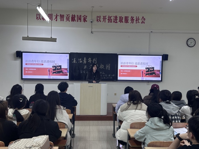 为深入学习贯彻习近平法治思想,切实提升大学生的网络安全防范意识,强化学生的法治观念与政治素养,进一步规范大学生网络言论行为,引导其文明上网、安全用网,人文学院学生第三党支部普法宣讲团于3月13日面向2024级380名学生,组织开展以“网络安全专题法治教育”为主要内容的普法宣传活动。