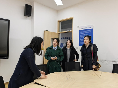3月30日,乔晶、范晓明赴四川工商学院,外国语学院副院长刘洁,英语教研室主任张慧和教师刘美表示了热烈欢迎,并详细介绍了英语专业人才培养理念与模式、课程体系设置、实践教学等方面。双方围绕人才培养目标定位、课程体系构建、实践教学环节、师资队伍建设以及学生管理与评价机制等关键议题展开了深入交流。交流热烈,收获了宝贵的建议和新思路。交流会后参观了四川工商学院具有地方特色的竹编非遗实训室,提升学生实践和就业能力的跨境电商实验室、录播室、计算机辅助翻译笔译实验室等。实验室负责老师详细介绍了实验室具体使用情况和提升学生就业竞争力的优秀案例。