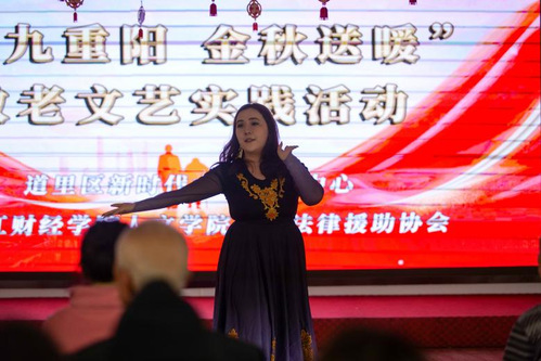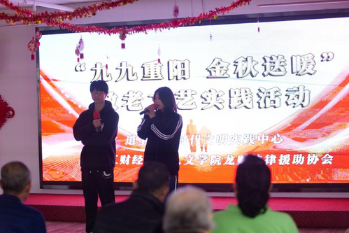 欢乐的时光虽短,关爱却永不落幕。演出尾声,人文学院学生向长辈们送上诚挚祝福,感谢道里区敬老服务中心工作人员的支持。龙财法律援助协会承诺,将持续牵挂长辈们,常来探望陪伴,用专业法律知识为大家的晚年生活保驾护航。